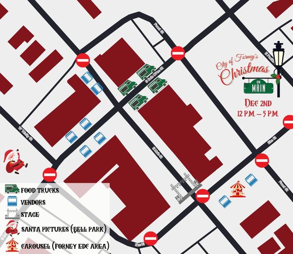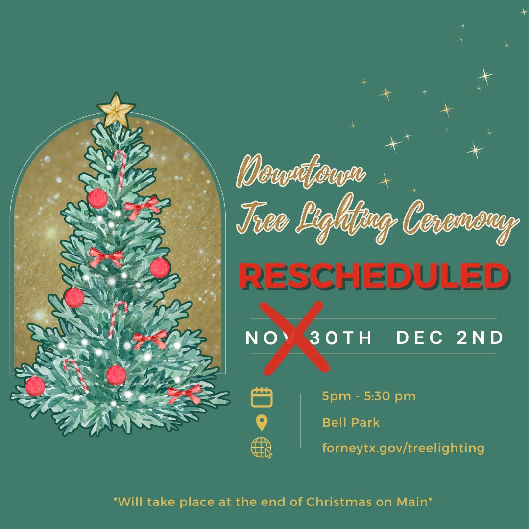 Saturday, Dec. 2nd 2023 is Forney's Christmas on Main at Noon - 5 with the rescheduled Tree Lighting at 5.