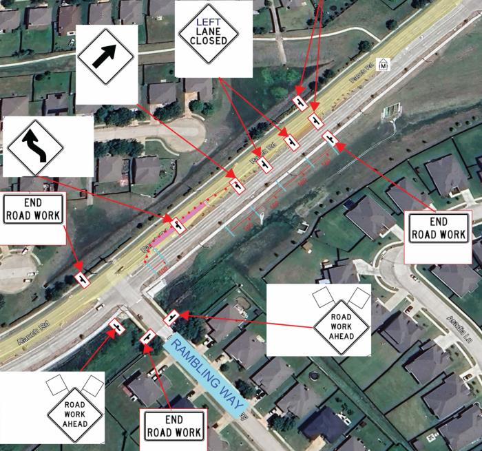 Beginning Monday, March 24, 2025, crews will begin concrete replacement on Ranch Road between Rambling Way and Longhorn Lane. Work will take place on the west side (southbound lanes) and is expected to last approximately one week.