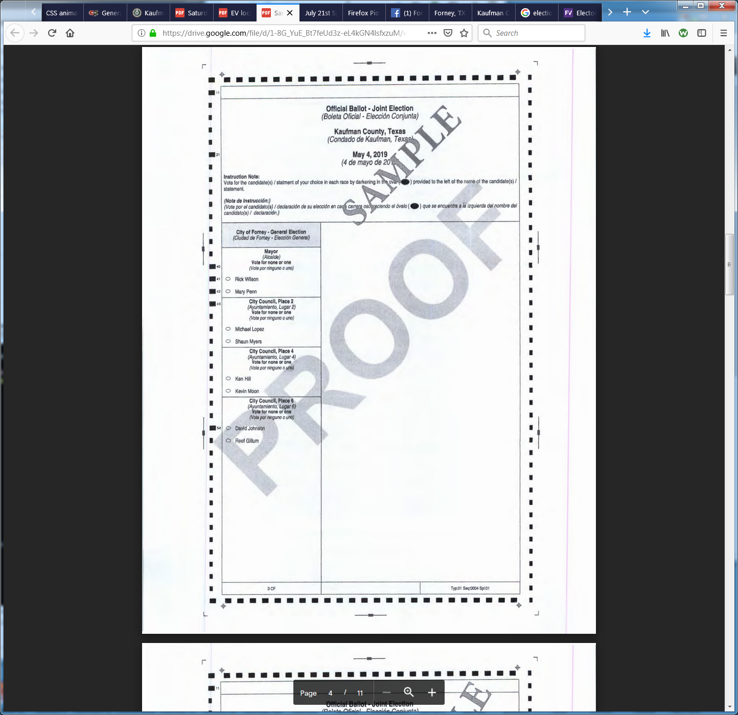 May 04, 2019 General Election, for Forney City Council but not Forney Independent School District.