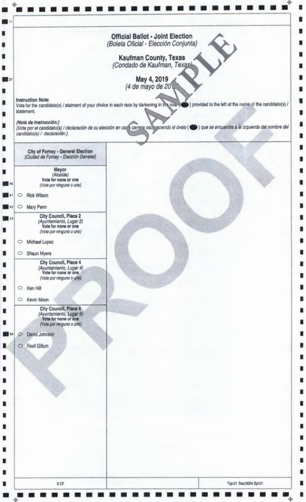 Forney Area Voters (MOST voters will have these options; all sample ballots shown below)
